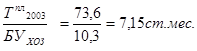 = DНТ =(73,6-83,8)·1141=-11679,2м, DНV +DНТ =-4357,6+(-11629,2)=-15986,8≈±∆Н=-15975м. Вывод: За 2002-2003гг. наблюдается тенденция снижения как коммерческой скорости (на 52 м/ст.мес.), в результате чего проходка сократилась на 4357,6 м., так и времени бурения ( на 9,8 ст.мес.), что также привело к уменьшению проходки на 11629,2 м, в итоге общая проходка уменьшилась на 15975м. При разделении показателя времени на две составляющие (на время нахождения одной БУ в бурении и на количество БУ в хозяйстве) анализ изменения проходки будет иметь вид: Определим число БУ в хозяйстве: БУХОЗ