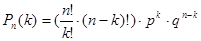 где Вероятность того, что в n независимых испытаний, в которых вероятность появления события равна р(0<р<1), событие наступит ровно к раз(безразлично, в какой последовательности), равна
