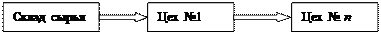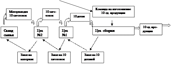 Условные обозначения: Материальный поток, информационный поток Рис. 1 Принципиальная схема толкающей системы управления материальным потоком в рамках производственной системы 2)