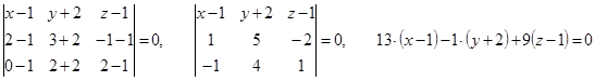 Решение. Воспользуемся уравнением плоскости, проходящей через три заданные точки. Вычислим определитель