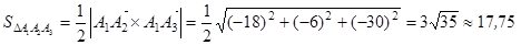3) Площадь грани (треугольника) равна половине площади параллелограмма, построенного на векторах и , т.е. половина модуля векторного произведения этих векторов, которое равно