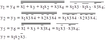8. Для реализации функциональной схемы в базисе ИЛИ-НЕ преобразуют полученные МДНФ, применив указанные законы: