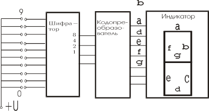 Учебное пособие: Синтез схемы шифратора и кодопреобразователя для управления 1-разрядным 7-сегментным индикатором