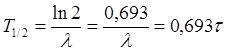 Таким образом, τ равно обратной величине постоянной распада λ. Практически более удобным оказалось характеризовать продолжительность жизни радиоактивного изотопа периодом полураспада Т1/2. Периодом полураспада Т1/2 называется то время, в течение которого распадается половина начального количества атомов данного радиоактивного вещества. Из соотношения (2) имеем