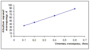 Графическая зависимость перепада температур на входе и выходе от степени конверсии представлена на рисунке 3.