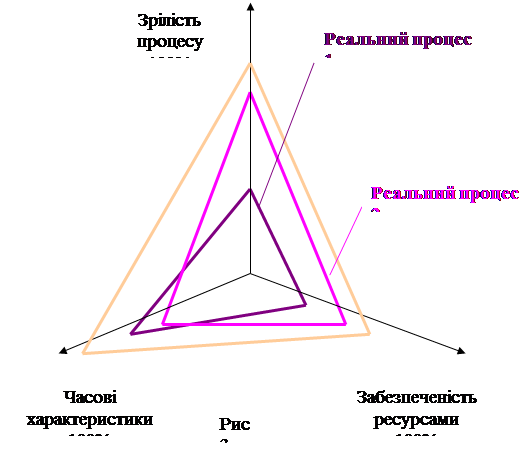Таку систему оцінок у вигляді шкали інтервалів в можна вважати нечіткою, оскільки оцінка базується на суб» єктивних вимірюваннях експертів. Усю множину вимірювань показника якості i‑того процесу можна описати функцією Qji процесу, яка матиме вигляд трикутника. Таким чином показник оцінювання i‑того процесу, який в свою чергу характеризується j показниками можна представити як функцію приналежності множини в нечітких вимірювань: QD .
