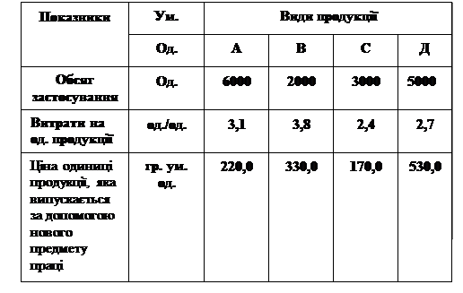 Задача 2 Розрахувати ефективність використання нового предмету праці, якщо витрати на його розробку і застосування склали 1200000 грн. ум. одиниць, а показники використання характеризуються наступними даними: