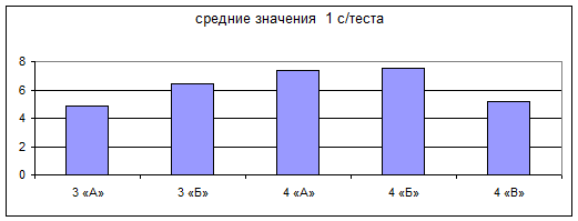Как видно по таблице №1, лишь по субтесту №1 и №6 средние значения исследуемых классов показывают средний уровень, по другим субтестам эти показатели низкие. При этом общий итог (его среднее значение) на класс в 3 а и 4 в на низком уровне (классы с обучением по традиционной форме), а в других классах в пределах нормы. Рассмотрим каждый субтест отдельно. Диаграмма 1.