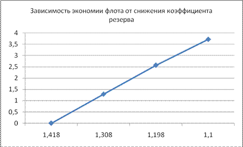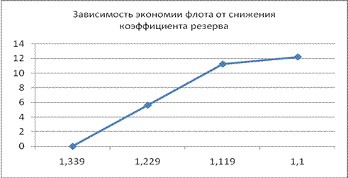 Рис.7 Таблица 10 Эксплуатационно-экономические показатели эффективности использования самоходных нефтеналивных судов по вариантам снижения коэффициента резерва от фактического до нормативного