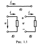 Следовательно, ток представляет собой скорость изменения заряда во времени. В СИ заряд выражается в кулонах (Кл), время – в секундах (с), ток – в амперах (А). Ток как отношение двух скалярных величин является скалярной алгебраической величиной, знак которой зависит от направления движения зарядов одного знака, а именно условно принятого положительного заряда. Для однозначного определения знака тока за положительное направление достаточно произвольно выбрать одно из двух возможных направлений, которое отмечают стрелкой (рис. 1.1, а).