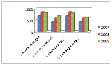 Схема 8. Динамика дебиторской и кредиторской задолженности ОАО «Сыктывкарский ЛВЗ» По итогам анализа отчета о прибылях и убытках ОАО «Сыктывкарский ЛВЗ» за 12 месяцев 2009 года можно сказать следующее: · Реализация продукции (выручка без НДС и акциза) за 12 месяцев 2009 года составила 681.576 тыс. руб. (+6,4% к прошлому году). · Себестоимость выпускаемой продукции за прошедший период составила 433.155 тыс. руб. (+7,3% к прошлому году). · Коммерческие расходы составили 57.991 тыс. руб. (+2,1% к прошлому году). · Управленческие расходы составили 74.262 тыс. руб. (-7,7% к прошлому году). · Прибыль от продаж составила 116.168 тыс. руб. (+16,3% к прошлому году). · Прибыль до налогообложения составила 114.956 тыс. руб. (+26,4% к прошлому году). · Налог на прибыль и иные аналогичные обязательные платежи составили 24.051 тыс. руб. (+7,8% к прошлому году). · Чистая прибыль по итогам деятельности акционерного общества за 12 месяцев 2009 года составила 90.905 тыс. руб. или 13,3% от выручки. Чистая прибыль в 2009 году выросла на 32,5% по отношению к предыдущему году. Высоким показателям Отчета о прибылях и убытках в 2009 г. способствовали высокие показатели продаж алкогольной продукции, как собственного производства, так и сторонних производителей. Это стало возможным благодаря проводимым мероприятиям по поддержанию высокого спроса на продукцию предприятия. Проводится поэтапная смена линейки выпускаемой предприятием алкогольной продукции (выводятся устаревшие бренды, их заменяют новые) и одновременно проводиться редизайн ранее выпускаемой продукции, пользующейся наибольшим спросом. |