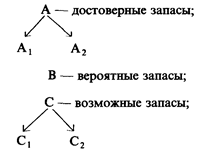Запасы категории А — это вполне изученные, разведанные и подготовленные к добыче, они предназначены для эксплуатационных работ предприятий, а также для проектирования и строительства предприятий. Запасы категории В — это геологически обоснованные, относительно разведанные и оконтуренные горными выработками и буровыми скважинами. Они могут быть взяты за основу для обоснования проектирования капитального строительства горных предприятий. Запасы категории С менее изучены, требуют уточнения при помощи детальных геологоразведочных работ, используются они для перспективного планирования развития горной промышленности и геологоразведочных работ. Кроме того, запасы месторождений полезных ископаемых делятся на две группы: геологические и промышленные. В свою очередь, геологические запасы делятся на балансовое и забалансовые. Балансовые — запасы, которые при данном уровне развития науки и техники могут быть извлечены из недр земли с достаточной эффективностью. Забалансовые — запасы, которые на данном этапе с экономической точки зрения нецелесообразно извлекать из недр земли. С развитием науки и техники, с появлением новых, более прогрессивных технологий, забалансовые запасы могут быть переведены в категорию балансовых. Промышленные запасы — это балансовые запасы за вычетом эксплуатационных или проектных потерь. Чем меньше эксплуатационные потери, тем больше может быть извлечено балансовых запасов, тем рациональнее используются месторождения полезных ископаемых. Месторождения какого-либо полезного ископаемого имеют различное экономическое значение. Для выявления лучшего проводится их экономическая оценка. Ей предшествуют геологическая и технологическая оценки. Геологическая оценка включает общие сведения о месторождении, геологическую характеристику района и геологическое строение месторождения. На основе геологической оценки определяются: геологические запасы; качество полезного ископаемого; горно-геологические условия залегания месторождения; глубина разработки; мощность пласта и др. Технологическая оценка призвана установить технологическую возможность разработки месторождения, возможные масштабы добычи, способ вскрытия, подготовки и др. Экономическая оценка месторождений производится на основе данных геологической и технологической оценок и определяет при эксплуатации того или иного месторождения следующие показатели: • общие и удельные капитальные вложения; • затраты на добычу, обогащение и реализацию продукции; • индекс доходности; • производительность труда; • прибыль и рентабельность; • срок окупаемости; • чистый дисконтированный доход. Чистый дисконтированный доход (ЧДД) определяется по формуле