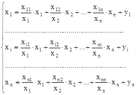 называется коэффициентом прямых затрат и содержательно означает объем продукции i-й отрасли, который требуется передать j-й отрасли, чтобы последняя произвела единицу своей валовой продукции.