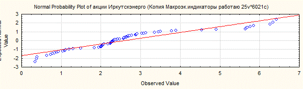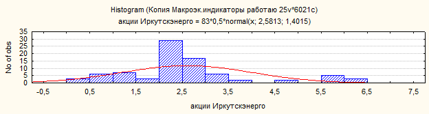 Таблица 3 Регрессия стоимости акций от макроэкономических показателей Regression Summary for Dependent Variable: акции Иркутскэнерго R= 0,91892781 R2 = 0,84442833 Adjusted R2 = 0,82760977 F(8,74)=50,208 p<0,0000 Std.Error of estimate: 0,58192