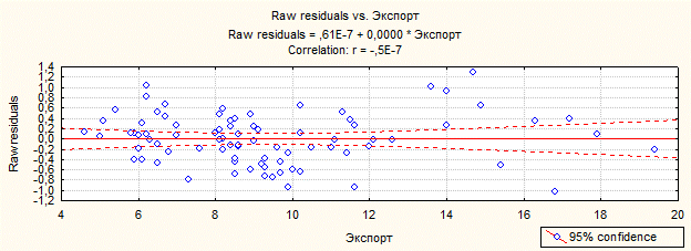 Оценки параметров регрессии, получаемые по методу наименьших квадратов, обладают статистическими свойствами несмещенности, состоятельности и эффективности. Свойство несмещенности оценок заключается в том, что оценки параметров b j , найденные с помощью линейного МНК, не содержат систематических ошибок при оценивании. Свойство состоятельности означает, что при росте объема выборки до бесконечности с вероятностью, близкой к единице, можно утверждать, что оценки параметров b j сходятся к оцениваемому параметру β j . Наконец, МНК-оценки являются эффективными, если они характеризуются наименьшей дисперсией в классе линейных оценок. Чтобы получаемые оценки параметров обладали данными свойствами, необходимо выполнение предпосылок (условий) регрессионного анализа Гаусса-Маркова [12] : 1. Е ( ε ) = 0 , т. е. математическое ожидание остатков равно нулю. Невыполнение данного условия приводит к тому, что оценки параметров теряют свойство несмещенности. 2. Условие гетероскедастичности, или одинакового разброса: D ( ε ) = σ2 , т. е. дисперсия возмущений в модели распределена равномерно, ее величина постоянна (дисперсия не может увеличиваться с ростом числа наблюдений). Выполнение данного условия позволяет получать эффективные оценки параметров b j . 3. Условие отсутствия автокорреляции: cov ( ε i , ε j ) = 0, i , j = 1, …, n , т. е. отдельные наблюдения остаточной компоненты некоррелированы. Оценки метода МНК модели с автокорреляцией случайной составляющей теряют эффективность. Применение МНК в данном случае приводит к существенной недооценке параметров, в связи с чем теряют свое значение процедуры проверки гипотез и обоснованность предсказаний. 4. cov ( ε , x j ) = 0, j = 1, …, p , т. е. объясняющие переменные не коррелируют с возмущениями модели. 5.