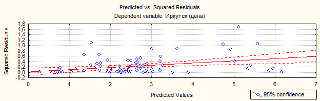 Таблица 4 Регрессия стоимости акций от котировок иностранной валюты Regression Summary for Dependent Variable: акции Иркутскэнерго R= 0,86801429 R2 = 0,75344881 Adjusted R2 = 0,74408611 F(3,79)=80,473 p<0,0000 Std.Error of estimate: 0,70901