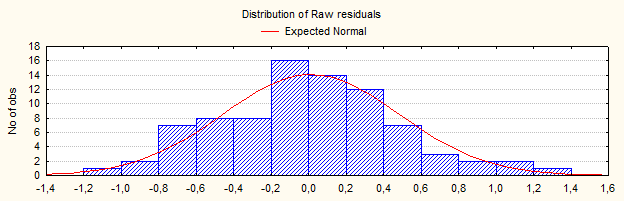 Коэффициент детерминации показывает долю объясненной уравнением регрессии дисперсии зависимой переменной и выражается в долях. Коэффициент детерминации изменяется от 0 до 1. Высокое значение R2 говорит о том, что включенные в уравнение регрессии факторы в основном объясняют вариацию значений зависимого признака. Если же значение R2 невелико, то можно сделать вывод о том, что факторы, оказывающие существенное влияние на результирующий показатель, в уравнение регрессии не вошли. Однако существует ряд ограничений, сужающих возможности применения данного показателя для анализа. Прежде всего, коэффициент детерминации позволяет проводить сравнение различных линейных по параметрам регрессионных уравнений для одной и той же зависимой переменной. Второе ограничение связано с количеством объясняющих переменных в модели. Сопоставимые уравнения регрессии зависимой переменной должны включать одинаковое число факторов и могут отличаться лишь составом независимых переменных. Ограничение по количеству объясняющих переменных обусловлено тем, что R2 является неубывающей функцией от числа включенных в регрессию факторов. Поэтому наряду с традиционным часто используют скорректированный коэффициент детерминации , позволяющий проводить сравнение линейных регрессионных уравнений с разным подмножеством факторов: где R2 - базовый коэффициент детерминации; n - объем выборки; q - число факторов в факторном наборе. Еще одно требование связано с наличием свободного члена. Константа должна входить или отсутствовать одновременно во всех сравниваемых уравнениях. Квадратный корень из R2 для линейной модели представляет собой коэффициент множественной корреляции и характеризует тесноту связи совокупности факторов, включенных в уравнение регрессии, с исследуемым показателем. Кроме того, дополнять оценку качества регрессионного уравнения следует проверкой значимости как параметров регрессии, так и самого регрессионного уравнения. 1). Проверка значимости параметров позволяет установить существенность влияния отдельных факторов на зависимую переменную. Проверка значимости параметра предполагает проведение процедуры проверки гипотезы о том, что фактор x j не оказывает существенного влияния на зависимую переменную. Нулевую гипотезу относительно параметра модели формулируют следующим образом: Альтернативная ей гипотеза утверждает, что β j значимо отличается от нуля: Статистика для проверки сформулированной гипотезы принимает вид: Если верна нулевая гипотеза, то статистика (17) имеет распределение Стьюдента. Расчетное значение t-статистики сравнивают с квантилью t-распределения t α , ν , которая имеет параметры: ν - число степеней свободы, ν = n-p-1, p - число объясняющих переменных в уравнении регрессии; α - уровень значимости. Величина α определяет надежность статистических выводов. Чем выше требования к надежности результатов, тем меньше должна быть величина α. Если расчетное значение t-статистики попадает в критическую для проверяемой гипотезы область | t | > t α , ν , то параметр β j значим, следовательно, фактор x j оказывает существенный вклад в вариацию зависимого признака. В противном случае, если | t | < t α , ν , то влияние фактора несущественно и он может быть исключен из уравнения регрессии. 2). Целью поверки гипотезы о значимости уравнения р