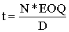 где N – количество рабочих дней (месяцев) в году; D – потребность в заказываемом продукте, штук; EOQ – оптимальный размер заказа, штук. По данным, приведенным выше, определим время потребления запаса: