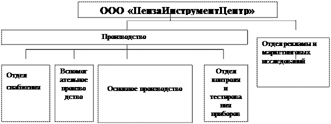 Рисунок 1 - Структура предприятия ООО «ПензаИнструментЦентр» Качество продукции ООО «ПензаИнструментЦентр» соответствует общепринятым стандартам, поэтому она находит широкие рынки сбыта в России. Аппарат управления ООО «ПензаИнструментЦентр» состоит из отделов и подразделений, контролирующих деятельность предприятия. Существует необходимость наличия управленческого персонала в каждом цехе, подразделении, на каждом участке работы предприятия, в каждой смене. Коллектив предприятия не велик, но для организации слаженной работы всех цехов и подразделений, во избежание простоев в работе, в целях рационального и эффективного использования ресурсов и мощностей предприятия и повышения качества выпускаемой продукции, выполняемых работ и оказываемых услуг, необходимо контролировать и направлять деятельность персонала предприятия на всех стадиях производственного процесса. Основными задачами, с которыми предприятие вошло в 2009 год, были: - дальнейшее расширение номенклатуры выпускаемых приборов и комплексов; - увеличение доли денежного оборота; - сокращение сроков оборачиваемости дебиторской и кредиторской задолженностей; - увеличение инвестиций в основные производственные фонды с целью остановить процесс их старения; - поддержание и, по возможности, наращивание уровня социальной защищённости трудящихся предприятия. Практически все задачи в настоящее время решаются. Таблица 1 Основные технико-экономические показатели ООО «ПензаИнструментЦентр» (в тысячах рублей)
