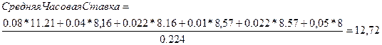 Рассмотрим расчет на примере И1М4: Определим трудоемкость, используя данные приложения 4. Трудоемкость=0,08+0,04+0,022+0,01+0,022+0,05=0,224 Определим среднюю часовую ставку по формуле, приведенной выше.