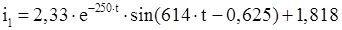 По таблице преобразований Лапласа находим оригинал тока в виде:
