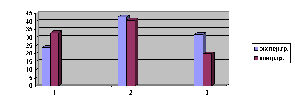 Рис. 3. Результаты личностного опросника А.Т. Джерсайлда в контрольной и экспериментальной группах Условные обозначения: 1 - свобода выбора; 2 -враждебный настрой; 3 - расхождение между реальным и идеальным «Я». По полученным данным, у студентов экспериментальной группы в меньшей степени выражено такое эмоциональное состояние, как свобода выбора (2,5), чем у студентов контрольной группы (3,4). Возможно, студенты считают, что во время экзамена мало, что зависит от них и им остается только подчиниться ситуации. Более высокие показатели в экспериментальной группе по шкале: враждебный настрой (5,2), по сравнению с контрольной группой (4,3). Это, может быть связано с тем, что во время экзамена большинство студентов чувствует напряжение, дискомфорт в связи с недостаточной уверенностью в своих знаниях и в получении желаемой оценки. В экспериментальной группе наблюдается состояние расхождения между реальным и идеальным «Я» и проявляется более выражено (3,3), чем контрольной группе (2,1). Возможно, это связано с тем, что во время экзамена студенты стремятся показать себя с лучшей стороны, более выгодно преподнести себя и свои знания. Существует категория людей, обладающая высокими знаниями, которые (люди) не могут грамотно изложить имеющуюся у них информацию. Другая же категория людей, наоборот, может не обладать таким высоким уровнем знаний, однако настолько владеет ораторским искусством, что производит впечатление более ориентирующегося в данной области знаний человека, нежели студенты из первой категории. По результатам методики САН были получены данные, которые представлены на рисунке (см. Рис. 4). Рис. 4. Результаты теста САН в контрольной и экспериментальной группах Как видно на рисунке, показатели по шкале «самочувствие» ниже у студентов на экзамене (4,1), чем у студентов на занятии (5,3). То есть ситуация экзамена негативно повлияла на эмоциональное состояние студентов. Ситуация экзамена в меньшей степени сказывается на активности студентов. В экспериментальной группе этот показатель несколько выше (5,5), чем в контрольной группе – 5,2. Это может объясняться тем, что во время экзамена студентам приходится проявлять большую активность для достижения положительных результатов. На основании данного результата можно предполагать, что ситуация экзамена стимулировала активность студентов для достижения результатов. Т.е. в данном случае мы имеем свидетельство того, что трудная жизненная ситуация оказывает и позитивное влияние на эмоциональное состояние студентов. В ситуации экзамена у студентов более низкие показатели по шкале – настроение (4,2), чем у студентов на занятии (5,5). Это может свидетельствовать о том, что в ситуации экзамена наблюдается тенденция к снижению настроения у студентов. Таким образом, в ситуации экзамена в целом наблюдается снижение показателей самочувствия, настроения у студентов и незначительное повышение активности. Далее, в экспериментальной группе выделили две подгруппы по фактору субъективного отношения к этому экзамену. Первая подгруппа: студенты, для которых этот экзамен является достаточно трудной жизненной ситуацией (4 балла). Вторая подгруппа: студенты, для которых этот экзамен практически не является трудной жизненной ситуацией (1-2 балла). При сравнении результатов исследования с помощью Т-критерия Стьюдент
