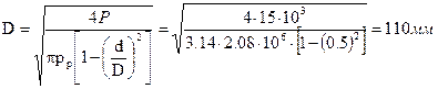 Принимаем в = 110 мм задавшись соотношением d/D, определяем d