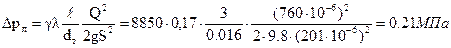 2.10. Определение потерь давления в гидролиниях Потери напора на каждом участке гидролинии определяем при рабочем ходе как сумму линейных и местных сопротивлений. Линейные потери напора определяем по формуле
