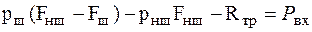 где рнш и рш – давление в нештоковой и штоковой полостях цилиндра; Fнш и Fш – площади поперечных сечений цилиндра и штока; Rтр – сила трения в уплотнениях поршня и штока; Рвых и Рвх – полезные усилия на штоке при выходе штока из гидроцилиндра или входе в него.