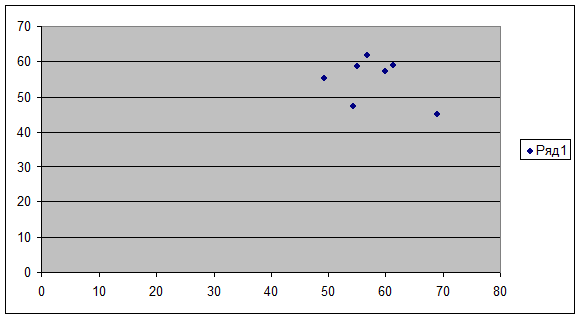 Предположим, что связь между среднесуточным душевым доходом в у.е. (фактор Х) и процентом от общего дохода, расходуемого на покупку продовольственных товаров (фактор Y), линейная. Для подтверждения нашего предположения построим поле корреляции.
