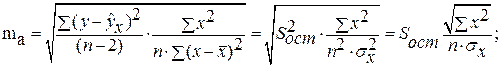 Случайные ошибки параметров линейной регрессии и коэффициента корреляции определяются по формулам: