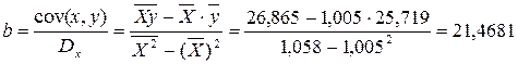 Получим линейное уравнение: 3. Оценка тесноты связи с помощью показателей корреляции и детерминации : · Линейная модель. Тесноту линейной связи оценит коэффициент корреляции. Был получен следующий коэффициент корреляции rxy