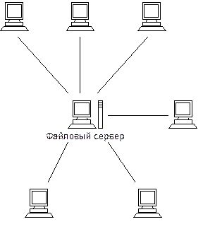 Существует ряд принципов построения ЛВС на основе выше рассмотренных компонентов. Такие принципы еще называют - топологиями. Топологии вычислительной сети Топология типа звезда Концепция топологии сети в виде звезды пришла из области больших ЭВМ, в которой головная машина получает и обрабатывает все данные с периферийных устройств как активный узел обработки данных. Этот принцип применяется в системах передачи данных, например, в электронной почте RELCOM. Вся информация между двумя периферийными рабочими местами проходит через центральный узел вычислительной сети.