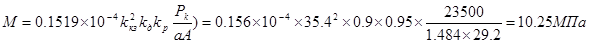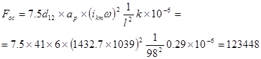 Sk = 2500´103 Мгновенное максимальное значение тока короткого замыкания: iк.max = 1,41kmax ´Iк.у. = 2.33´614.9 = 1432.7 А 1.41kmax = 2.33 по таблице 7.3 стр 330. Радиальная сила : Fp = 0.628 ´ (iк. max ´w)2 ´b´kp ´ 10-6 = 0.628´(1432.7´1039)2 ´1.31´0.96´´10-6 =1750023 Н Среднее сжимающее напряжение в проводах обмотки НН: