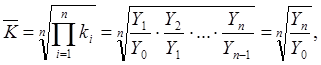 2) Поточний рівень ряду Yi розраховується за відомими попереднім рівнем Ys-1 і відповідним темпом росту ki , вираженим і відсотках, за формулою