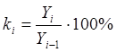 3) Темп росту ki для i-го року, виражений у відсотках, дорівнює
