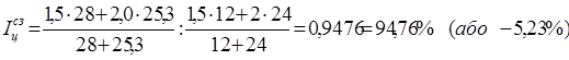 Підставляючи чисельні значення у формулу для зведеного індексу собівартості, знаходимо: