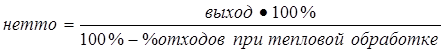 где 120 г - закладка картофеля весом нетто по рецептуре. Пример 2: Поступила тушка осетра, в таблицах технологических нормативов нормы потерь при тепловой и холодной обработках не указаны. В ходе контрольной отработки установлено, что при жарке его непластованными кусками проценты при холодной обработке составили 10%, при тепловой – 18%. Тогда, для приготовления осетрины под яблочно-сливочным соусом"Кальвадос" по рецептуре 310, закладка весом брутто составит: