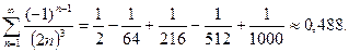 Последнее неравенство выполняется при n=5, значит достаточно оставить первые пять членов ряда