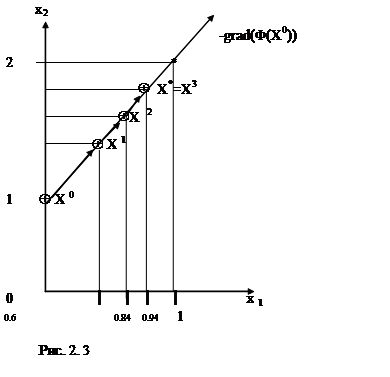 Формула (2.7) применяется, если для функции Ф(Х) необходимо найти минимум. Если же задача параметрической оптимизации ставится как задача поиска максимума, то для получения новых точек в градиентном методе с постоянным шагом используется формула: