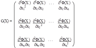 где G(X0 )- матрица Гессе (гессиан, матрица вторых производных), вычисленная в точке Х0 :