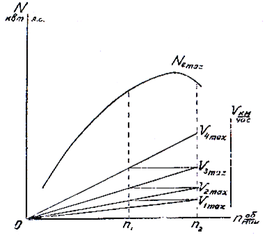 Характер кривых графика экономической характеристики автомобиля дан на рис.14.