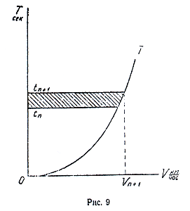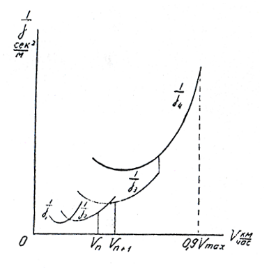 Задаваясь на вспомогательном графике пределами приращения скорости Tn=m1m2Fn, соответствующее приращению скорости от Vn до Vn+1. Разбивая всю площадь на достаточно большое (не менее 10) число площадок, получают ряд значений Т, которое сводят в таблицу 6.