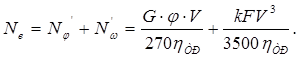 По результатам подсчетов суммарной затрачиваемой мощности N'φ+N'W определяют процент использования мощности двигателя при каждом значении скорости V при движении на прямой передаче