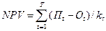 Т - продолжительность проектного цикла, равная числу интервалов планирования; П t - притоки денежных средств по проекту в течение интервала планирования t; Ot - оттоки денежных средств по проекту в течение интервала планирования t; kt - коэффициент дисконтирования.
