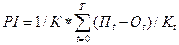В случае если, IRR превышает норму дисконта, инвестиции в данный проект оправданны и может рассматриваться вопрос о его реализации. В противном случае инвестиции в данный проект не целесообразны. Значение IRR имеет следующий экономический смысл: IRR - максимальный процент за кредит, который можно выплатить за срок, равный горизонту расчёта, при условии, что весь проект осуществляется только за счёт этого кредита. Это позволяет использовать IRR для определения целесообразности привлечения кредитных ресурсов: если процент за кредит ниже IRR, то использование такого кредита при реализации проекта является целесообразным. Индекс рентабельности (PI) - представляет собой отношение суммы приведенных эффектов от текущей деятельности по проекту к первоначальным капиталовложениям: