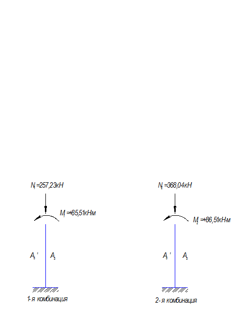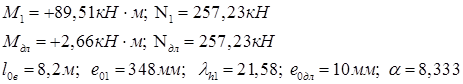 Для данных комбинаций усилий принимаем для надкрановой части колонны несимметричное армирование и для расчёта имеем следующие комбинации усилий. а) М1 = +89,51 кН*м; N1 = 257,23 кН; б) M2 = +86,51 кН*м; N2 = 368,04 кН. В том числе длительная часть нагрузки:
