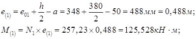 6. Учет влияния прогиба и определение величин эксцентриситетов «е» а) первая комбинация усилий: