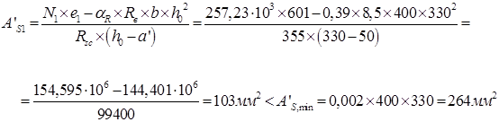 то формулах для расчёта арматуры вместо а) первая комбинация усилий: Площадь сечения сжатой арматуры: