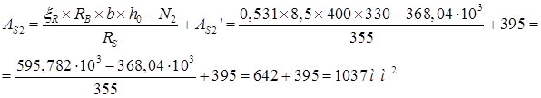 Арматуру подбираем по большей из трёх площадей, полученных при расчёте по обеим комбинациям усилий для каждой из арматур. Сжатую арматуру подбираем по